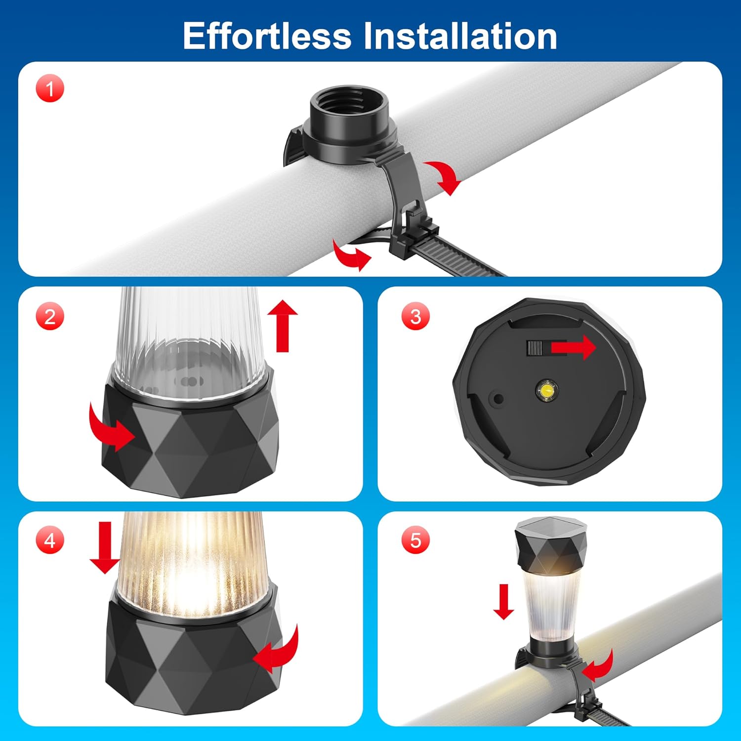 - Effortless Installation: To install the pool lights, simply utilize the adjustable straps provided. Fasten the lights securely to the pool fence, and then flip the switch. Please be aware that due to their strap - based mounting design, these lights are not suitable for use with inflatable pools or underground pools